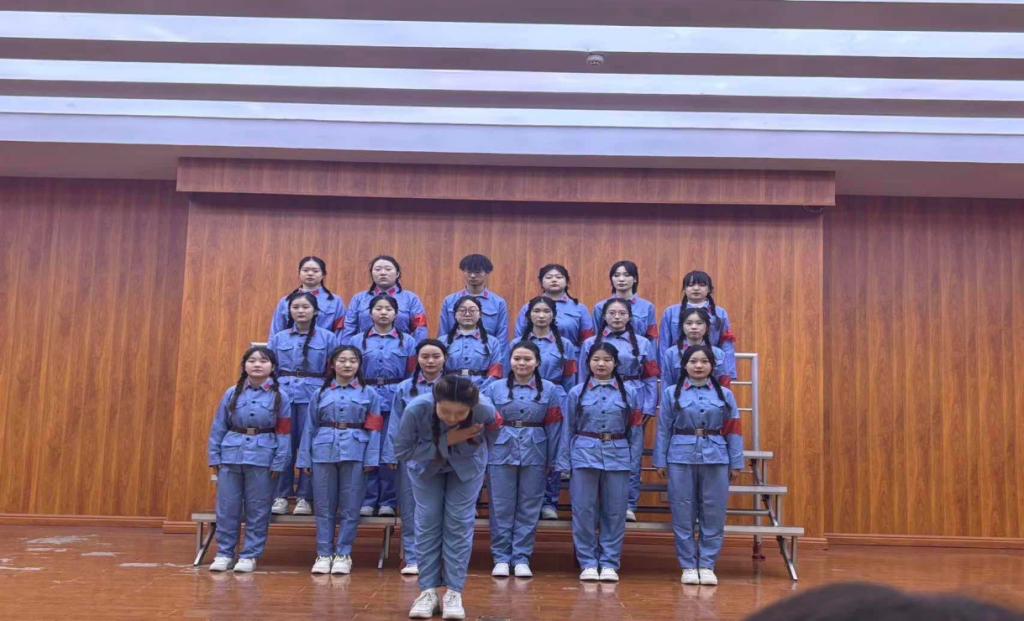 赛场上,一首首歌颂祖国、歌颂党、讴歌新时代的经典曲目在会场唱响,同学们在赛前都进行了反复的排练,嘹亮的歌声、整齐的动作,赢得了一阵又一阵的掌声。