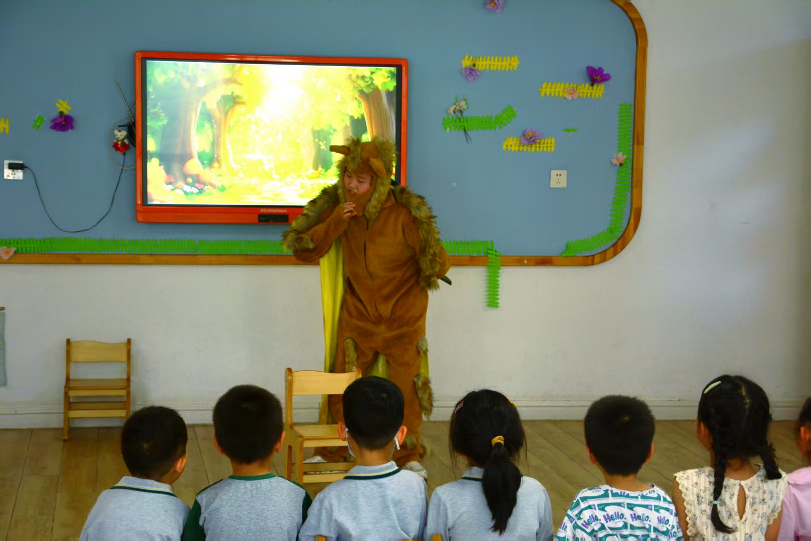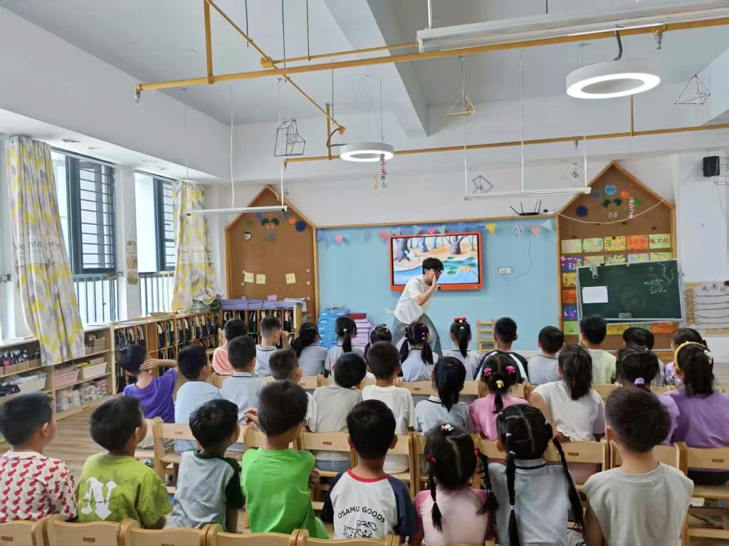 活动当日,思博特国际幼儿园园长热情迎接师生一行,并在园所门口与大家合影留念。随后园长精心安排了两个小班、两个中班及一个大班,作为本次故事分享的实践课堂。太阳成集团122ccvip的学子们迅速投入角色,走进不同班级,化身“故事魔法师”,以生动的语言、夸张的肢体动作和丰富的表情,将故事中的角色演绎得活灵活现。在互动环节,学子们巧妙地引导幼儿思考、提问,鼓励孩子们积极参与故事讨论,现场气氛热烈,欢声笑语不断。孩子们专注的眼神和热情的回应,让参与活动的学子们感受到了幼儿教育工作的独特魅力。