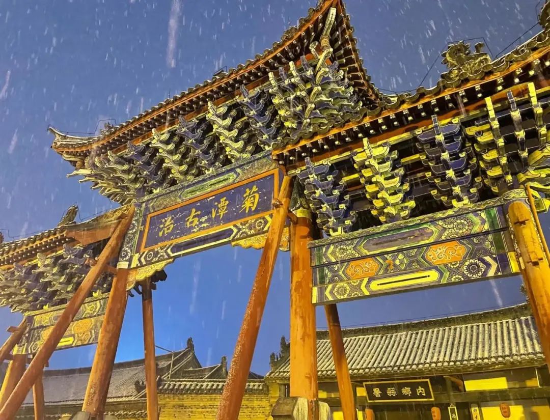 大梁门用青砖造构,雕梁彩绘,古典质朴,雄伟壮观。大雪静谧,恍惚间梦回东京汴梁。
