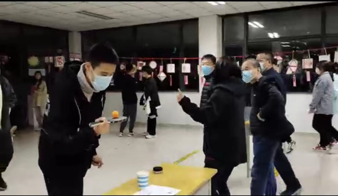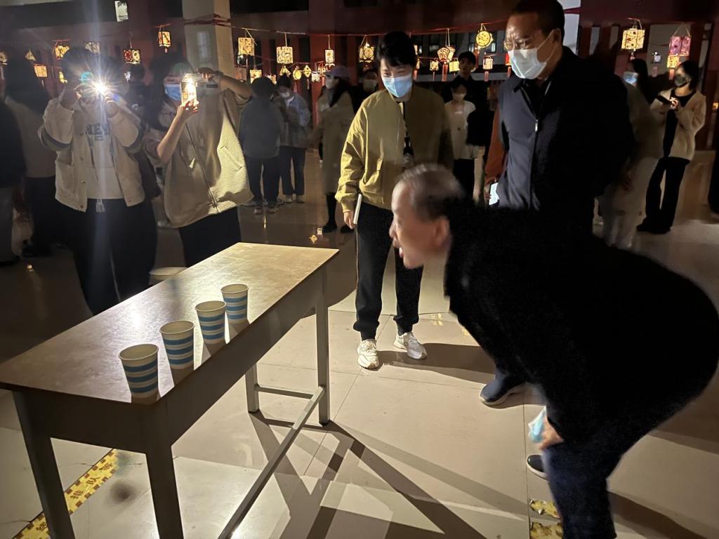 本次活动同样受到了校领导的高度重视,公司党委书记冯向军、副董事长梁周勇、纪委书记薛雁明、工会主席姜荣蓉也来到了活动现场,领导们饶有兴趣地了解了灯笼的制作过程和现场的活动安排,并与员工一起体验了闯关游戏。冯书记现场为大家深情朗诵了李白的《将进酒》,姜主席带着现场的同学一起演唱了儿歌《踏浪》,戏剧公司副经理陆蓓、太阳成集团122ccvip副书记丁鼎也为同学们带来了精彩的戏曲片段演唱,赢得了一阵阵热烈的掌声。