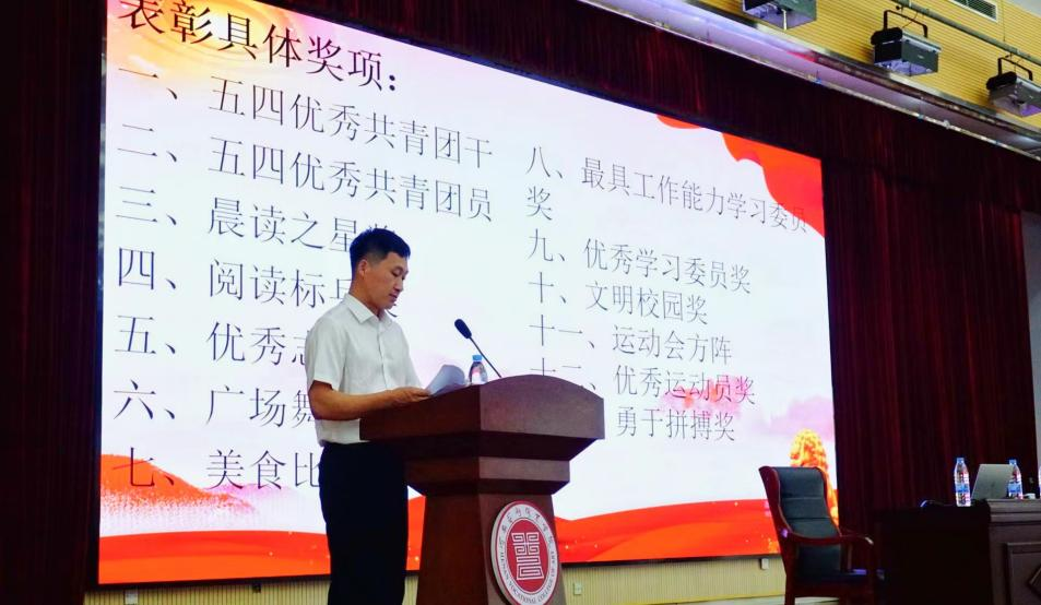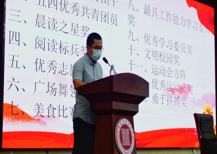 会议第三项议程:为获奖同学颁发证书。此次颁奖活动共设立了10个奖项,包括五四优秀共青团干、五四优秀共青团员、晨读之星、阅读标兵、运动会方阵(集体荣誉奖)、优秀运动员、勇于拼搏奖、广场舞领舞(最佳风采奖)、美食比赛(创意大赛一等到三等)、最具工作能力学习委员和优秀学习委员等。获奖人数达100多人次,是幼教公司成立以来规模最大的一次表彰大会,同学们在一次次掌声中受到了鼓舞。
