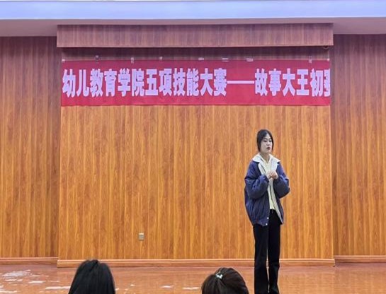 太阳成集团122ccvip为进一步提升学前教育专业员工的专业技能,以赛促教、以赛促学,开展了学前教育专业说、弹、唱、跳、画五项专业技能比赛,11月17日,“故事大王”初赛在音乐公司2C412举行。