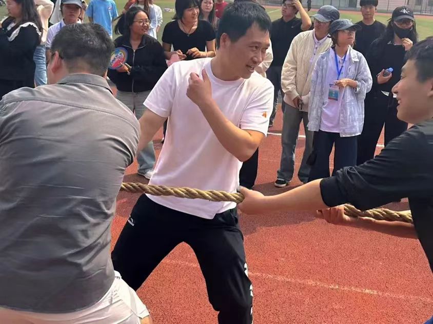 在观赛场另一边,教职工运动会热烈开场。平日里在讲台上挥洒智慧的老师们,此刻化身运动健将,他们团结一心,每一次发力都凝聚着集体的力量,成为校园里一道独特而温暖的风景线。