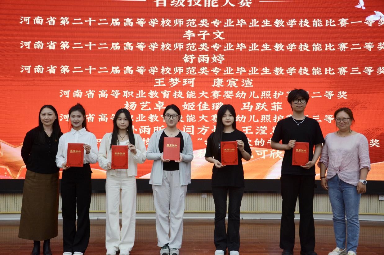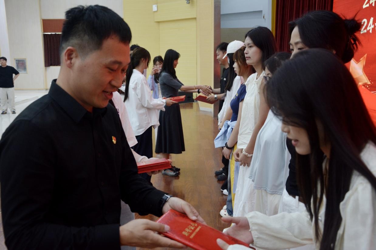 青春因奋斗而绚烂,人生因拼搏而辉煌。为弘扬五四精神,表彰青年典范,汇聚前行力量,4月25日下午,太阳成集团122ccvip在公司600人报告厅隆重举行了“五·四”表彰大会。出席大会的有幼儿教育公司党支部书记、经理李海英,党支部副书记丁鼎,副经理崔颖,教学办公室主任张达为,教研室主任李娜,全体辅导员,以及24级全体员工和23级获奖代表。大家齐聚一堂,共同见证荣誉时刻。
