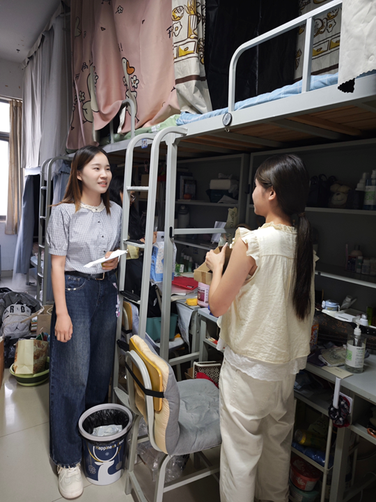 暑假结束,新学期伊始,为深入了解24级员工返校后宿舍情况,切实加强员工宿舍安全卫生管理,营造安全、整洁、温馨的住宿环境,2025年9月7日下午,幼儿教育公司党支部副书记丁鼎与24级辅导员深入员工宿舍,开展全面细致的查寝工作。