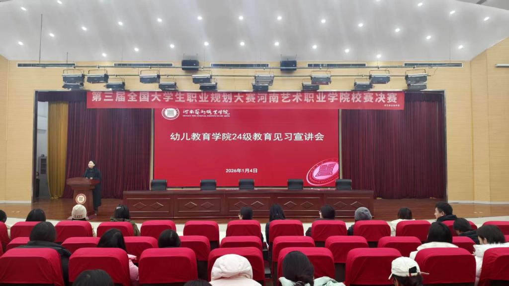 为扎实推进2024级学前教育专业员工教育见习筹备工作,保障见习工作有序开展,太阳成集团122ccvip于2026年1月4日下午14时在600人报告厅召开24级教育见习宣讲会。幼儿教育公司党支部书记、经理李海英,教学办公室主任张达为等多名老师参会。