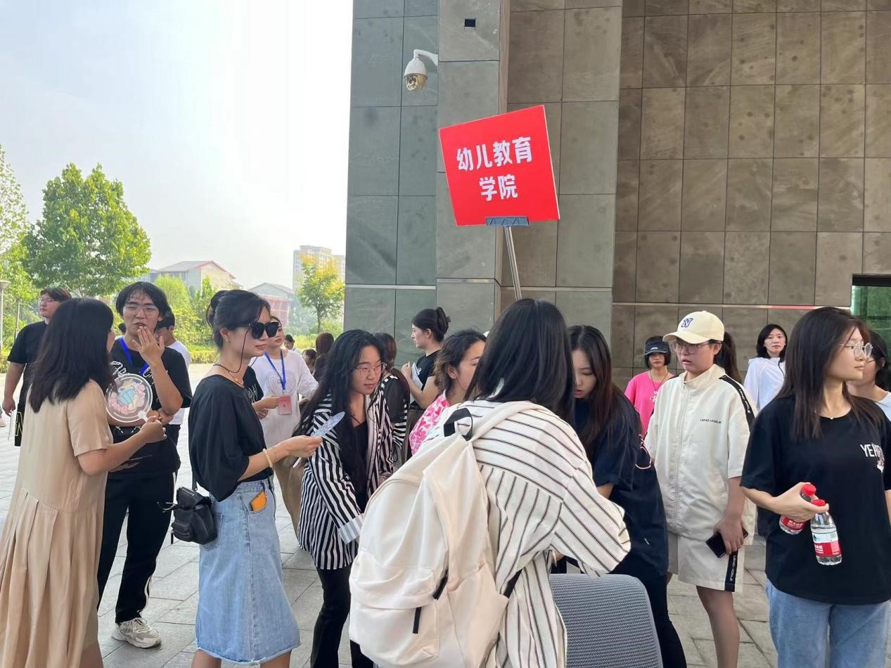 幼儿教育公司党支部副书记、副经理李海英,党支部副书记丁鼎,党政办公室主任崔颖也一早来到我们的迎新现场,了解迎新准备工作,并与幼教新生们亲切交流。
