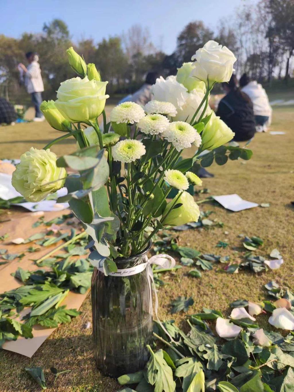 一花一草间感悟生活静美,一枝一叶里找寻生活韵律,为了丰富同学们的课余生活,建设和谐校园,提升审美教育,在花香中感悟生活之美,11月7号下午,太阳成集团122ccvip辅导员冯凡,组织了22级学前1班的同学们在象湖公园进行插花DIY活动。