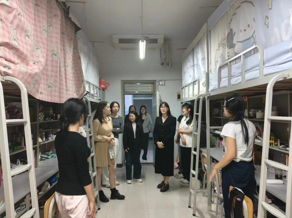 “四时俱可喜,最好新秋时”,随着十一国庆假期的收尾,同学们都开始了新的学期。为了鼓励新同学适应校园环境,营造良好的生活环境和学习氛围,公司开展了文明宿舍的评选活动。10月9日下午,幼儿教育公司党支部副书记丁鼎、辅导员张兵、冯凡、陈艾嘉、齐宁阳、赵秀红、李梦瑶、李华、崔祥宇深入员工宿舍开展“文明宿舍”评选活动。